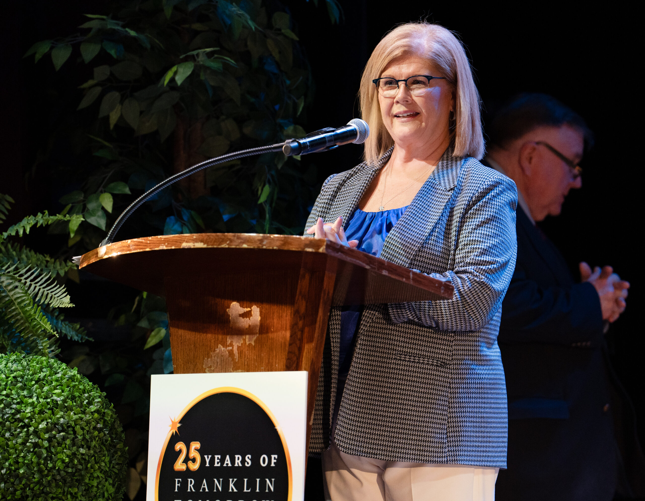 - Former Board Chair Teresa Ashworth Harris announces the president’s awards at Franklin Tomorrow’s 18th annual Volunteer Awards ceremony on Monday, March 24, 2025 at the Franklin Theater.